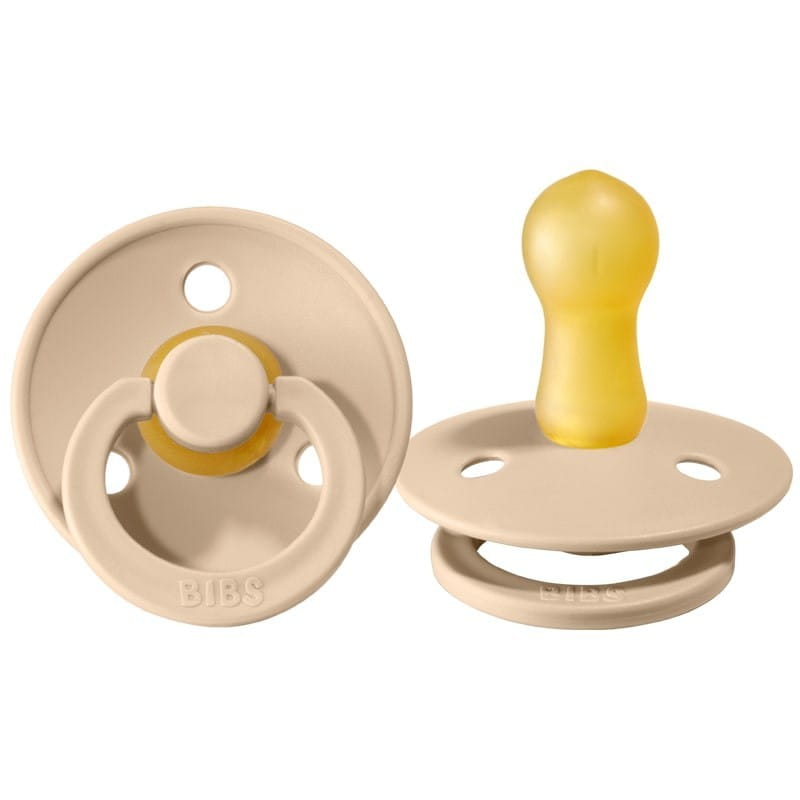 Smoczek Bibs wykonany z naturalnego kauczuku hevea, pociesza i uspokaja noworodki od pierwszych dni życia oraz niemowlęta. Dzieci czują jakby ssały pierś mamy. Duński smoczek ma klasyczny okrągły kształt, przypominający brodawkę sutkową mamy i wspierający odruch ssania. Końcówka smoczka naturalnie układ się w buzi podczas ssania, nie zakłóca naturalnego rozwoju podniebienia, dziąseł i zębów. Organiczny kauczuk użyty do wykonania smoczka Bibs jest elastyczny, miękki, całkowicie bezpieczny, nie wywołuje alergii. Okrągła tarczka z otworkami jest wyprofilowana, lekko odchyla się od buzi dziecka, nie dotykając brody, dzięki czemu zapewnia swobodny przepływ powierza, zapobiega odciskom, krostkom, oparzeniom wokół buzi.