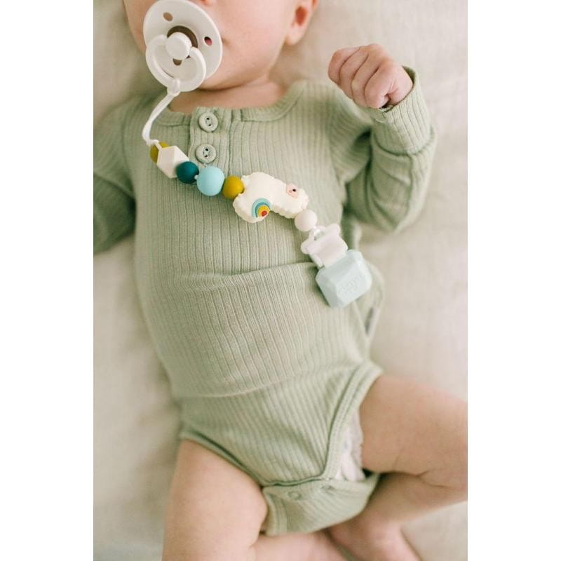 Ręcznie wykonana w Kanadzie zawieszka do smoczka loulou LOLLIPOP składa się z koralików oraz małego gryzaczka w kształcie Lamy. Luksusowa zawieszka jest w całości wykonana z silikonowych elementów. Silikonowe perełki są bezpieczna dla dzieci już od narodzin. Klips można przypiąć do ubranka, otulacza, wózka lub fotelika i dzięki temu ulubiony gryzak lub smoczek zawsze jest pod ręką dziecka, z dala od brudnej podłogi i nigdy się nie zgubi.