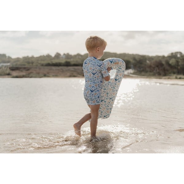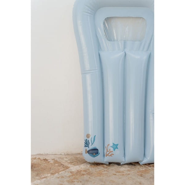 Dmuchana deska do pływania Ocean Dreams od Little Dutch przyda się do aktywnych zabaw jak i relaksu nad wodą. Niebieski nadmuchiwany materac w formie deski będzie idealnym towarzyszem wodnych zabaw. Płyń po wodzie i zobacz, co znajduje się na dnie - może przez małe okienko zauważysz rybkę. Zrelaksuj się i zdrzemnij na dmuchanym materacu na plaży lub trawie lub użyj go jako deski i płyń z prądem. To idealna dmuchana zabawka, którą można zabrać ze sobą nad morze, jezioro lub na basen.