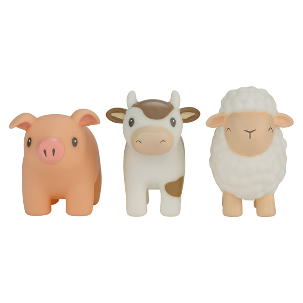 Figurki do kąpieli Little Farm od Little Dutch. Dzięki tym figurkom kąpiel będzie jeszcze przyjemniejsza. Zwierzątka są łatwe do uchwycenia przez małe rączki ze względu na swój rozmiar i lekki materiał. Można się nimi bawić również poza wanną.