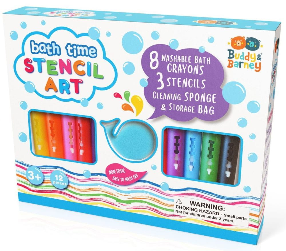 Kredki do kąpieli w wannie, gąbeczka, szablony Buddy & Barney