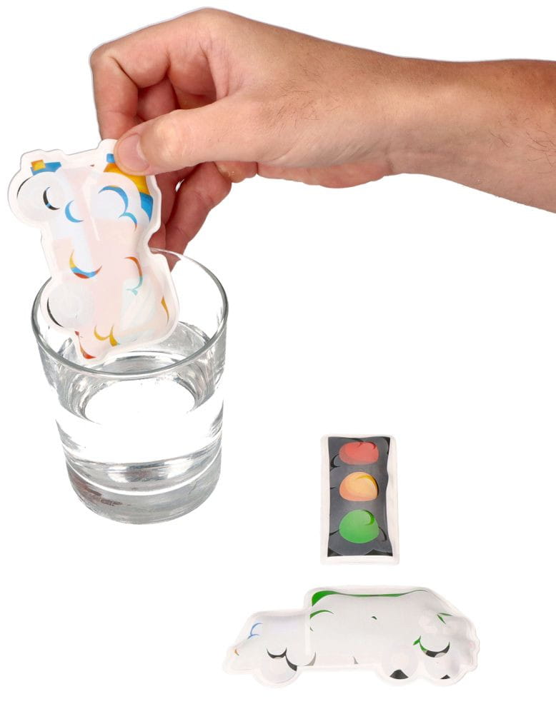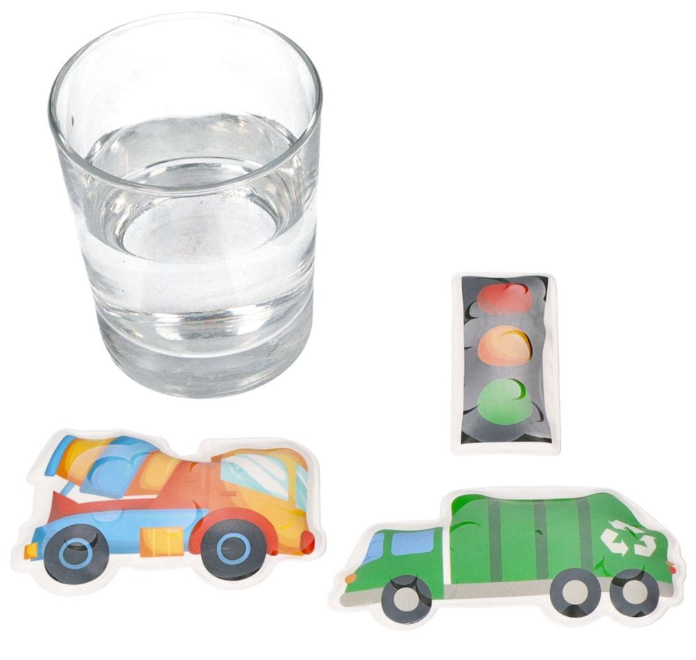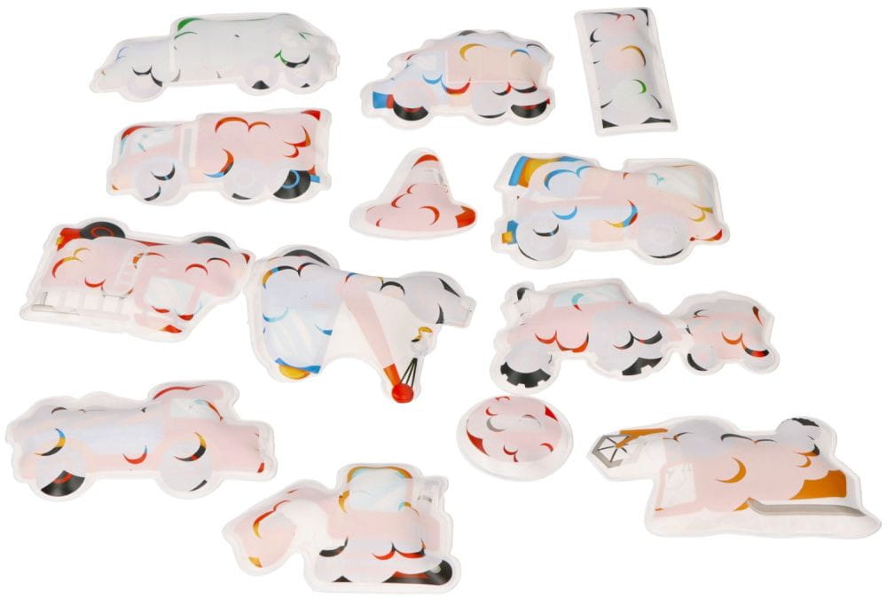 Zabawne naklejki z motywem pojazdów od uznanego producenta Buddy & Barney sprawią, że na buziach maluchów zagości uśmiech w kąpieli. Każda naklejka to niespodzianka, ponieważ dopiero po zamoczeniu w wodzie odkryje się przed Wami ukryty na obrazku pojazd drogowy.