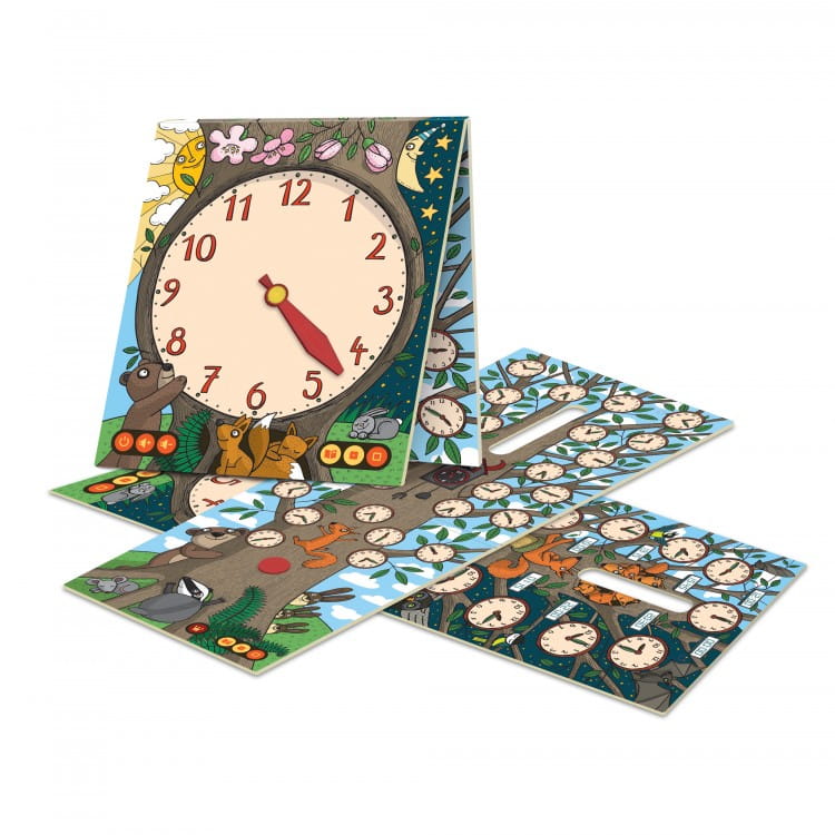 Nauka zegara to wielkie wyzwanie! Ten interaktywny zegar wytłumaczy dzieciom, jak rozpoznawać czas na zegarze ze wskazówkami i zegarze elektronicznym. Dla utrwalenia wiedzy najmłodsi będą mogli zagrać w quizy, w których wskażą właściwą godzinę lub zegar. Naukę umili dzieciom ukryta w zegarowym drzewie bajka o Królestwie dokładnego czasu.