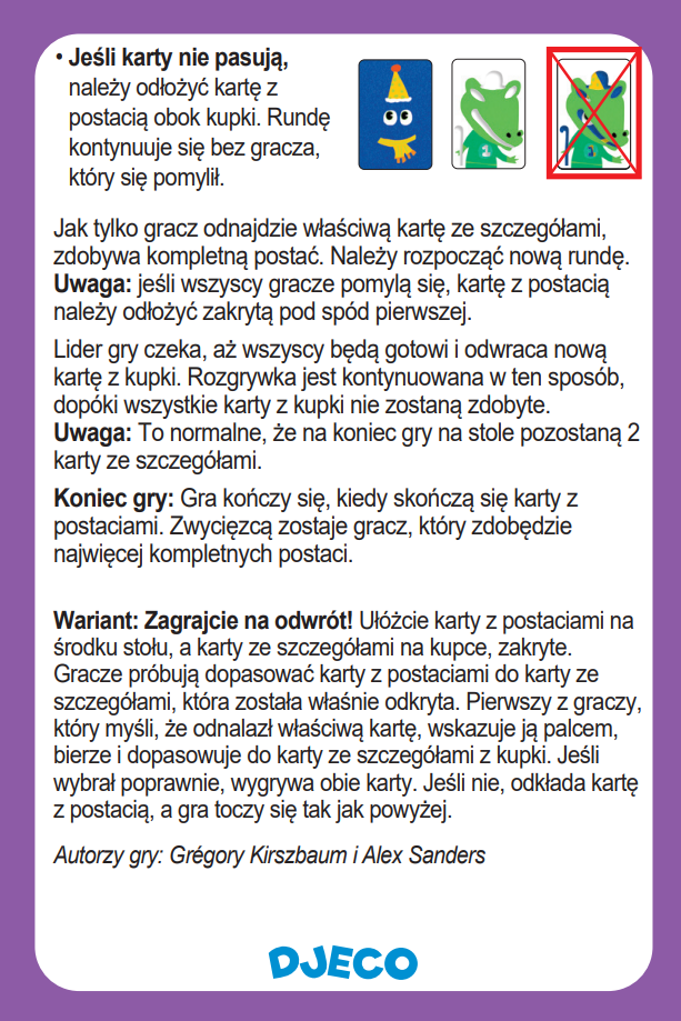 Doskonała gra na ćwiczenie szybkości i spostrzegawczości. Elementy zestawu zostały wykonane z papieru i kartonu posiadającego certyfikat FSC®.