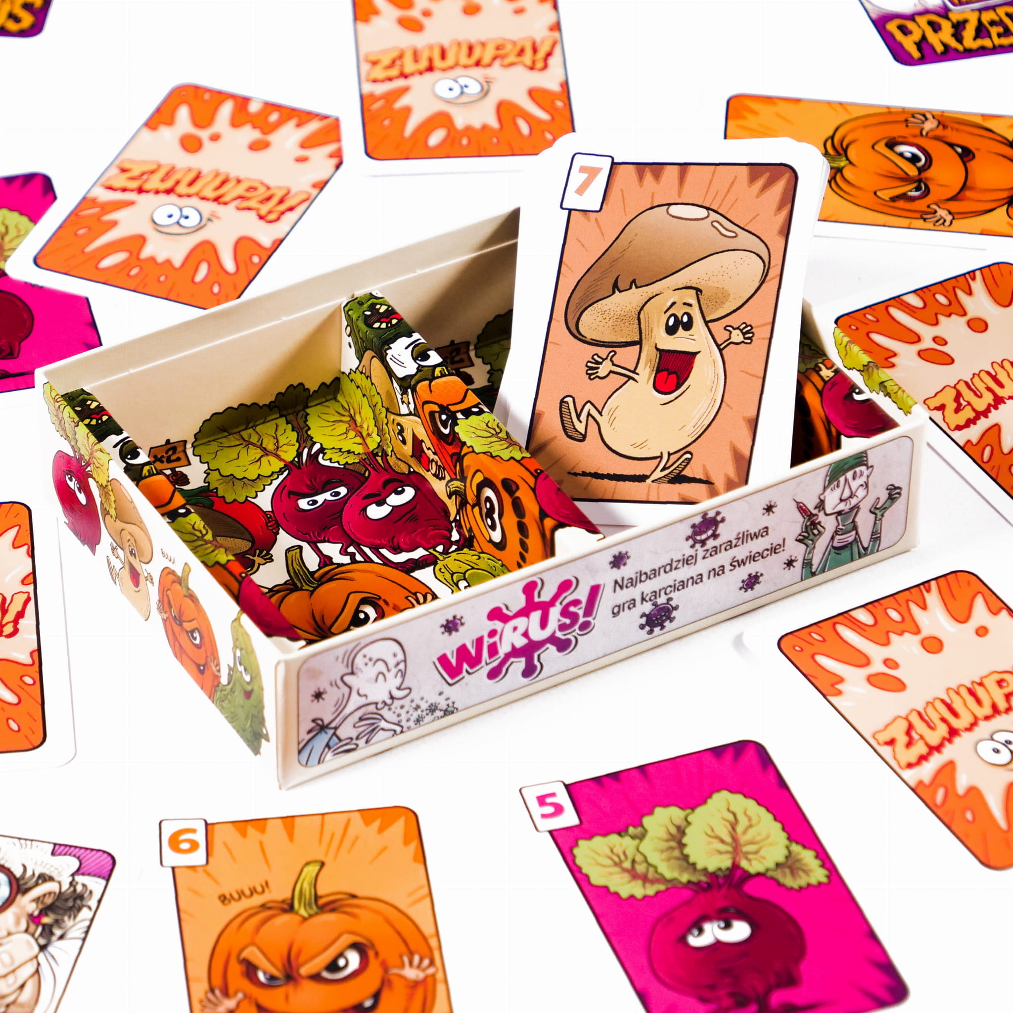 Gratka dla fanów Wirusa! Podgrzej atmosferę (i zupę) zapraszając znajomych do gry w szybką, imprezową karciankę prosto od cenionego projektanta Reinera Knizii. Łatwe do zapamiętania zasady sprawią, że “Zuuupa!” stanowi doskonałe wprowadzenie dla osób bez doświadczenia w grach planszowych lub karcianych.