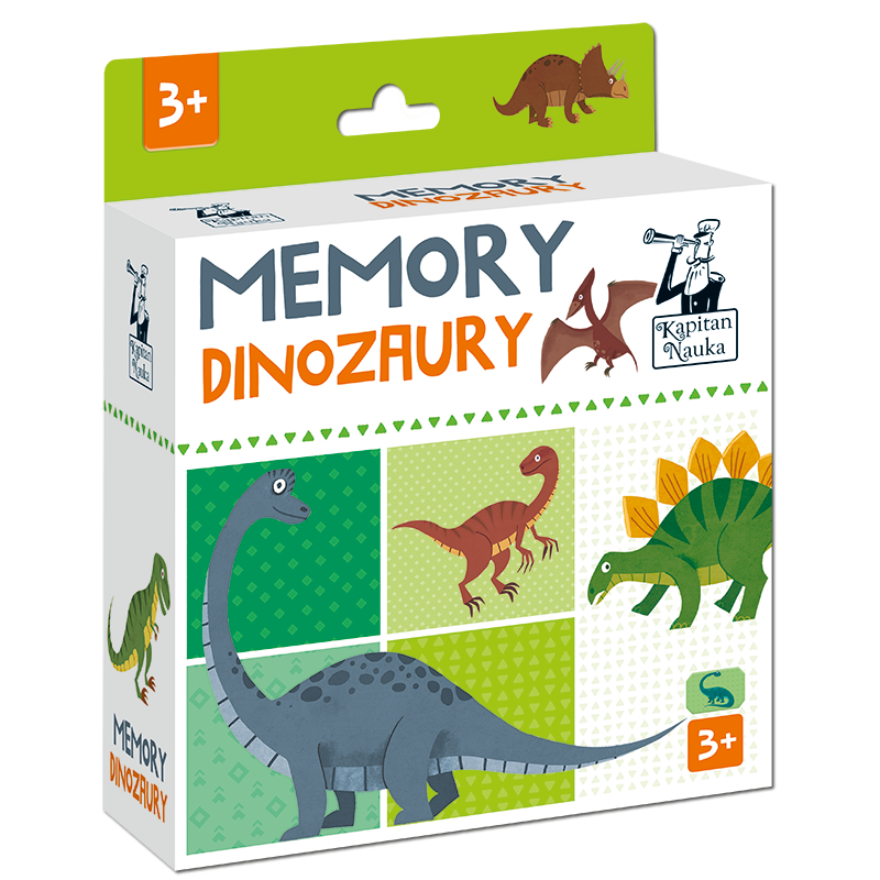 Memory Dinozaury od Kapitana Nauki to mądra gra dla dzieci, która ćwiczy pamięć maluchów a także wprowadza je w prehistoryczny świat dinozaurów. Dzięki zapamiętywaniu ułożenia 24 elementów gry mali gracze ćwiczą spostrzegawczość, rozwijają także umiejętności społeczne, w tym cierpliwość w oczekiwaniu na swój ruch.