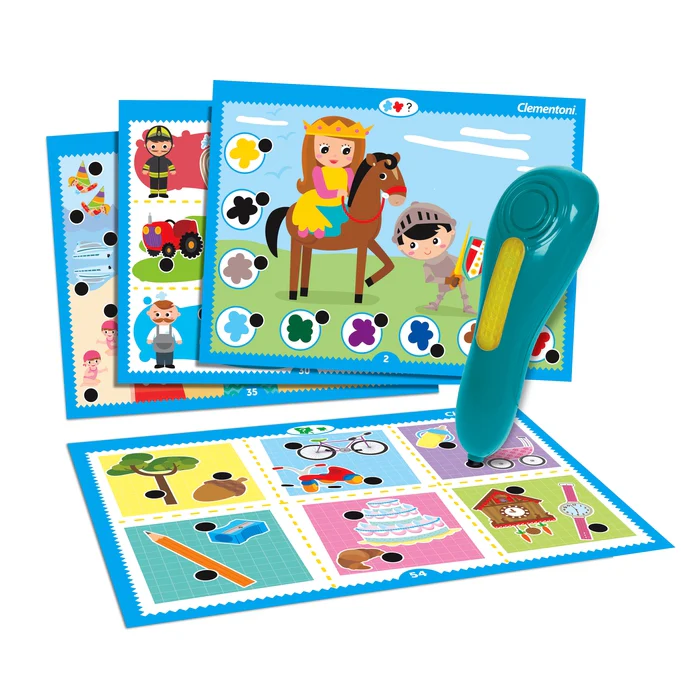 Mówiące elektroniczne pióro prowadzi dziecko przez grę, informując je, czy udzielona odpowiedź jest prawidłowa.