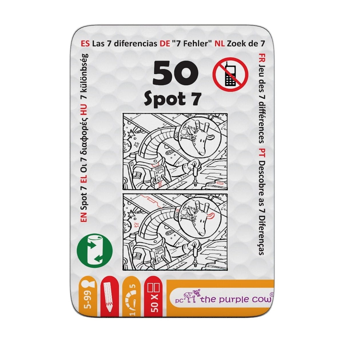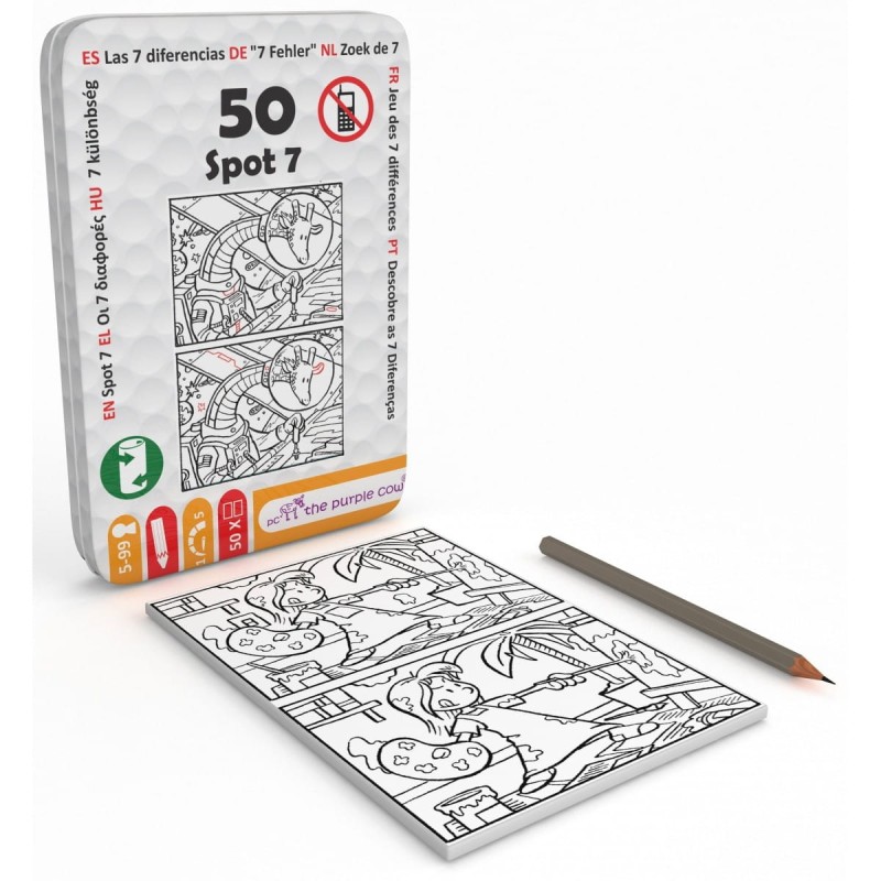 Podróżne łamigłówki Znajdź siedem różnic to aż 50 stron zagadek dla dzieci o wzrastającym stopniu trudności. Zabawa polega na znalezieniu 7 różnic między dwoma bardzo podobnymi obrazkami. Dzieci mogą także pokolorować obrazki. Zabawa rozwija spostrzegawczość oraz koncentrację. Świetnie sprawdzą się w samochodzie, samolocie, restauracji, w domu gdy pada deszcz :) Mały rozmiar sprawia, że możemy zabrać je ze sobą wszędzie.