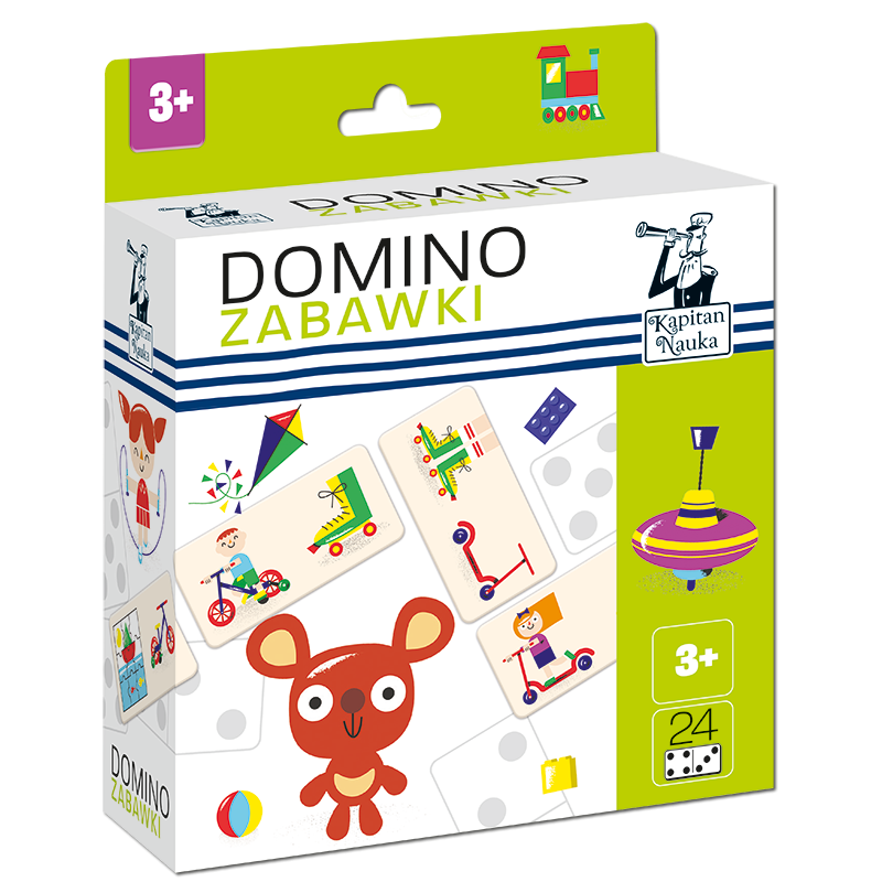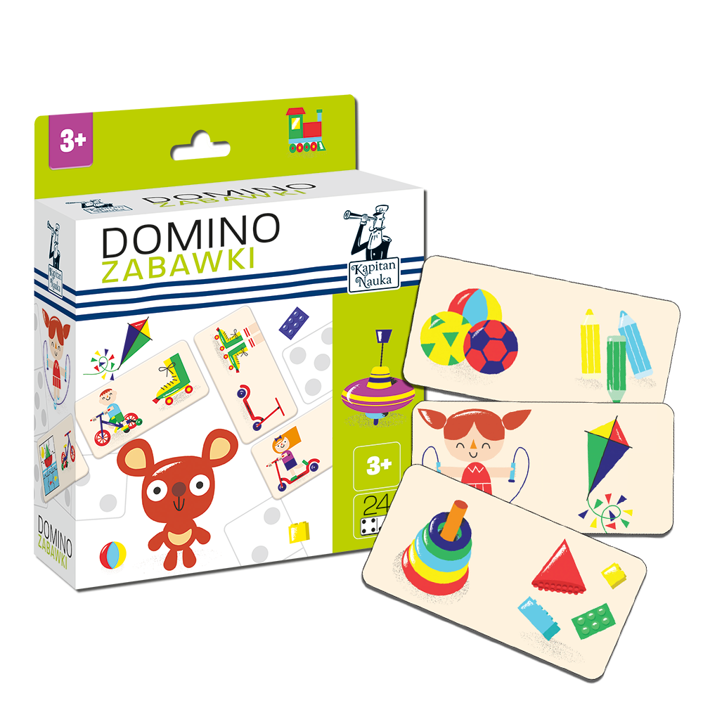 Domino obrazkowe Zabawki z serii KApitan Nauka to gra edukacyjna dla dzieci od trzeciego roku życia.
