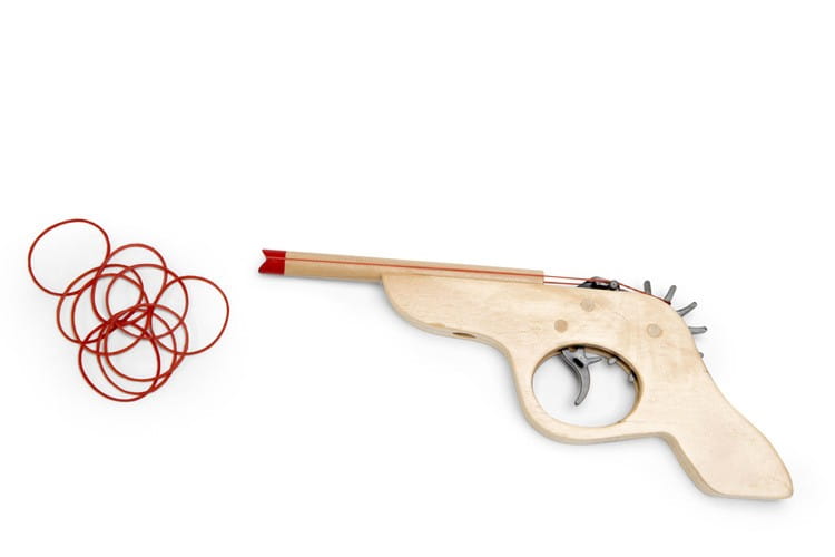 Załaduj pistolet jedną lub kilkoma gumkami jednocześnie.