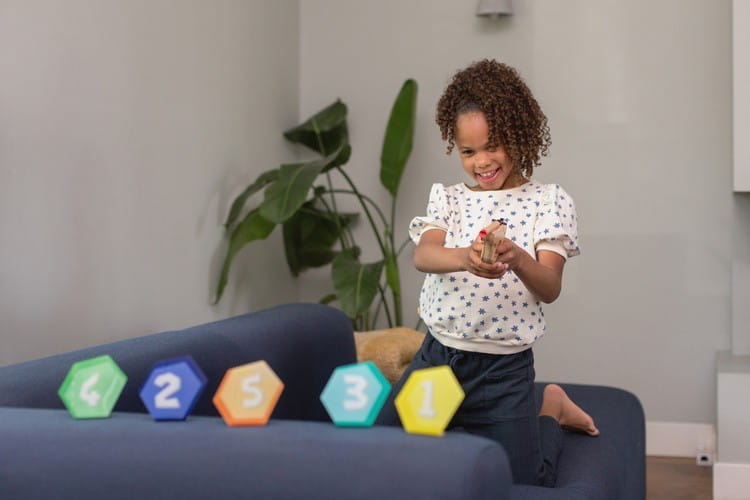 Zabawa i świetny trening oka dla młodego strzelca. Elementy wykonane są z wysokiej jakości drewna. Do zestawu dołączone są gumki recepturki oraz pistolet z ruchomą zębatką, która po naciśnięciu spustu powoduje uwolnienie się gumki i oddanie strzału do celu ( klocki 1,2...)