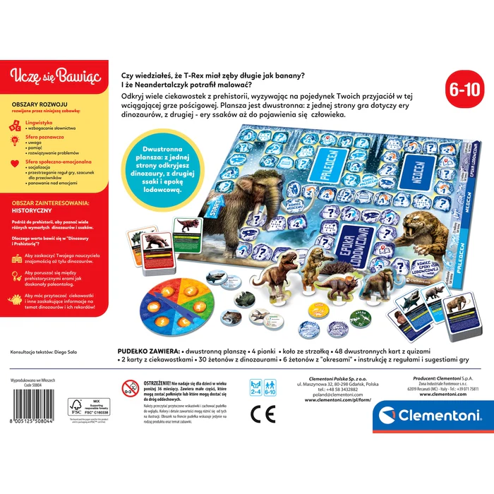 Dinozaury i prehistoria gra planszowa quiz Clementoni