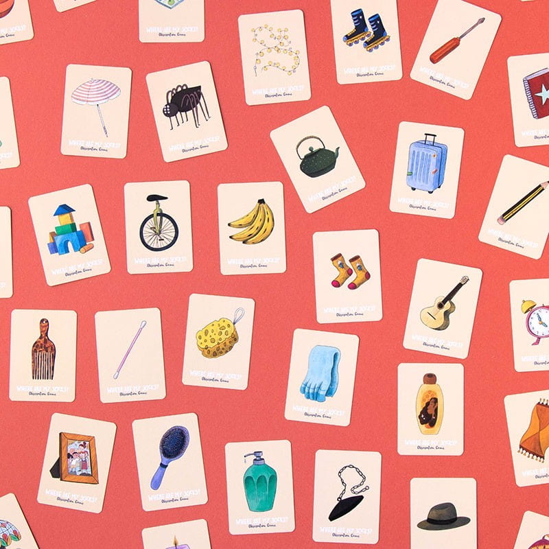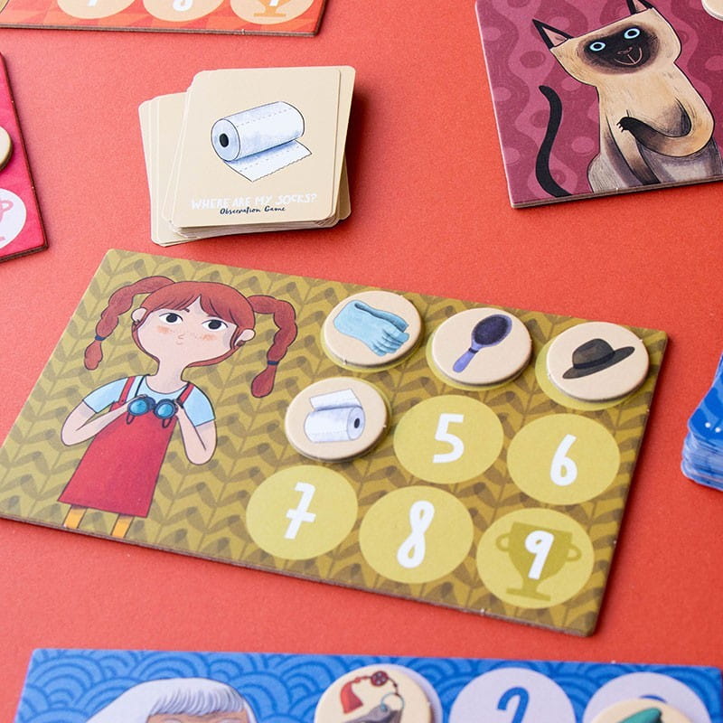 Gra składa się z serii kart, na których znajdują się różnorodne, zabawnie zilustrowane skarpetki. Zadaniem graczy jest znalezienie par pasujących do siebie skarpetek wśród rozrzuconych kart. To, co wyróżnia Where are my socks? na tle innych gier obserwacyjnych, to unikalne, szczegółowe ilustracje i oryginalny design, który przyciąga uwagę i sprawia, że dzieci chętnie sięgają po tę grę.
