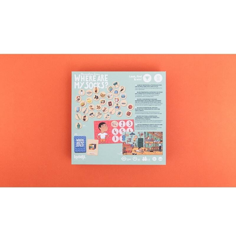 Where are my socks? to urzekająca gra obserwacyjna dla dzieci, stworzona przez znaną markę Londji, która specjalizuje się w tworzeniu edukacyjnych zabawek i gier. Ta kolorowa, wciągająca gra została zaprojektowana, aby rozwijać umiejętności obserwacyjne i koncentrację u najmłodszych, oferując przy tym mnóstwo zabawy i pozytywnych emocji.