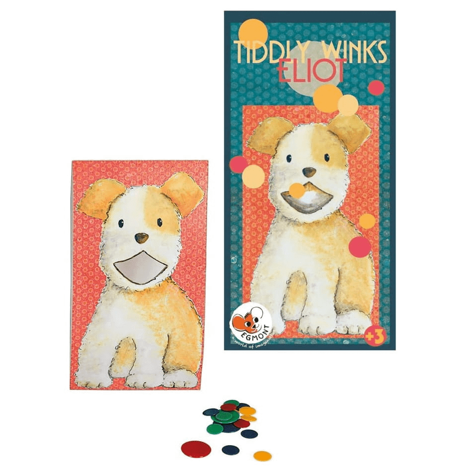 Ta tradycyjna i kolorowa gra planszowa TIDDLY WINKS ELIOT jest świetną zabawą dla małych i dużych. Sprytne pudełko kartonowe przekształca się w planszę do gry. Pchełki mają wskoczyć do celu - wprost do pyska Eliota.