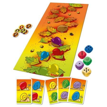 Pędzące ślimak to jedna z najbardziej rozchwytywanych gier planszowych dla dzieci i dorosłych. Planszówka ma proste zasady, a o zwycięstwie decydują dobra taktyka i umiejętność nie zdradzania, które ślimaki ma sie doprowadzić do celu. Gracze rzucają kolorowymi kostkami i przemieszczają wyznaczone ślimaki na planszy. Po drodze starają się spychać przeciwników i zdobyć jak najwięcej pysznych grzybów. Do samego końca nie wiadomo, którymi ślimakami grają przeciwnicy, co gwarantuje wielkie emocje.