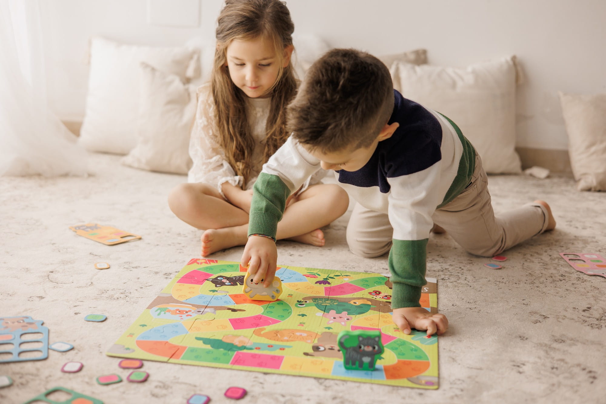 Po ułożeniu planszy z dużych puzzli i dokonaniu wyboru zwierzątka – pionka, gracze dobierają planszę z z zadaniami do swojego zwierzątka.