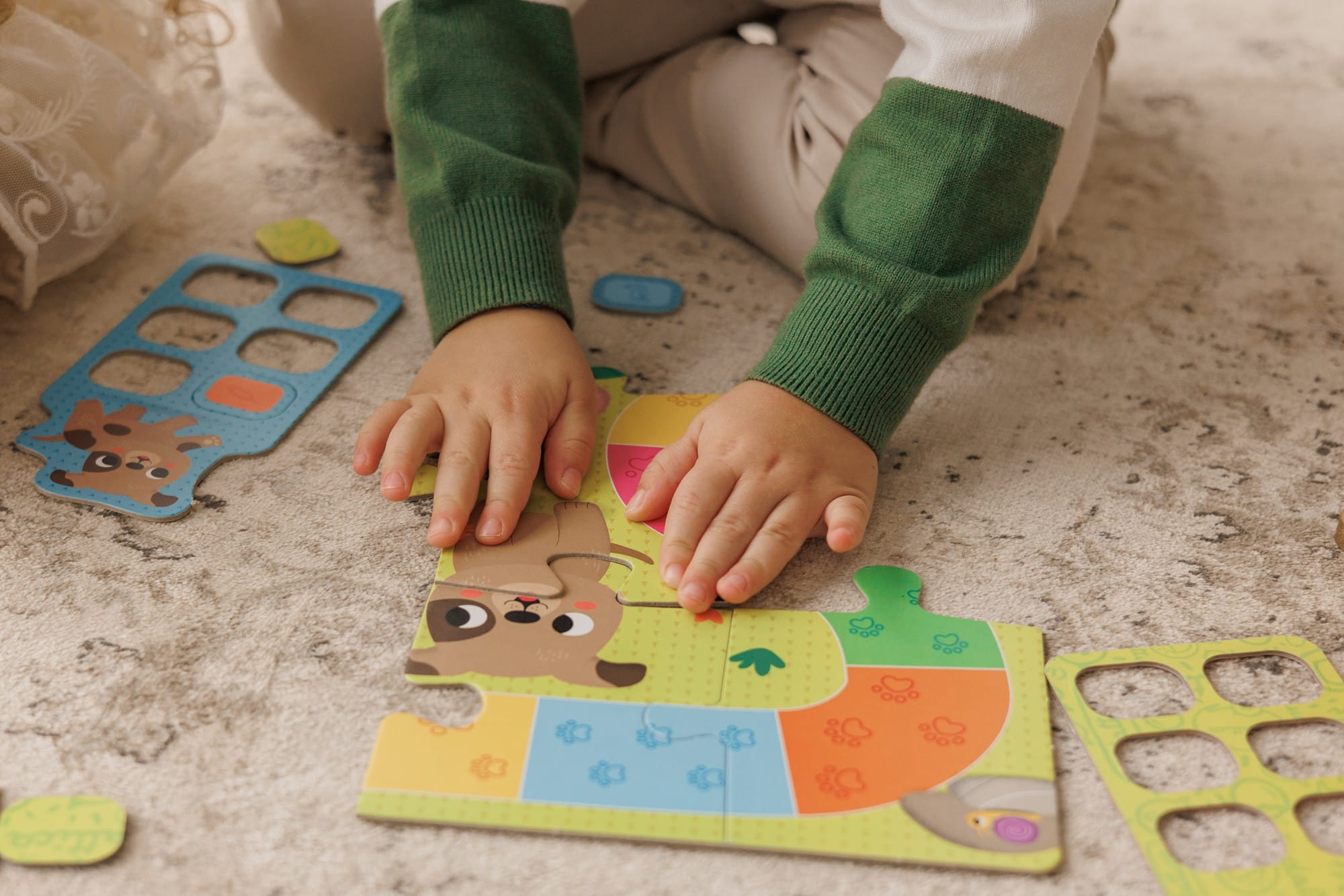 Dziecko może bawić się, samo lub w towarzystwie, w układanie puzzli, a następnie w rozpoznawanie zwierząt.