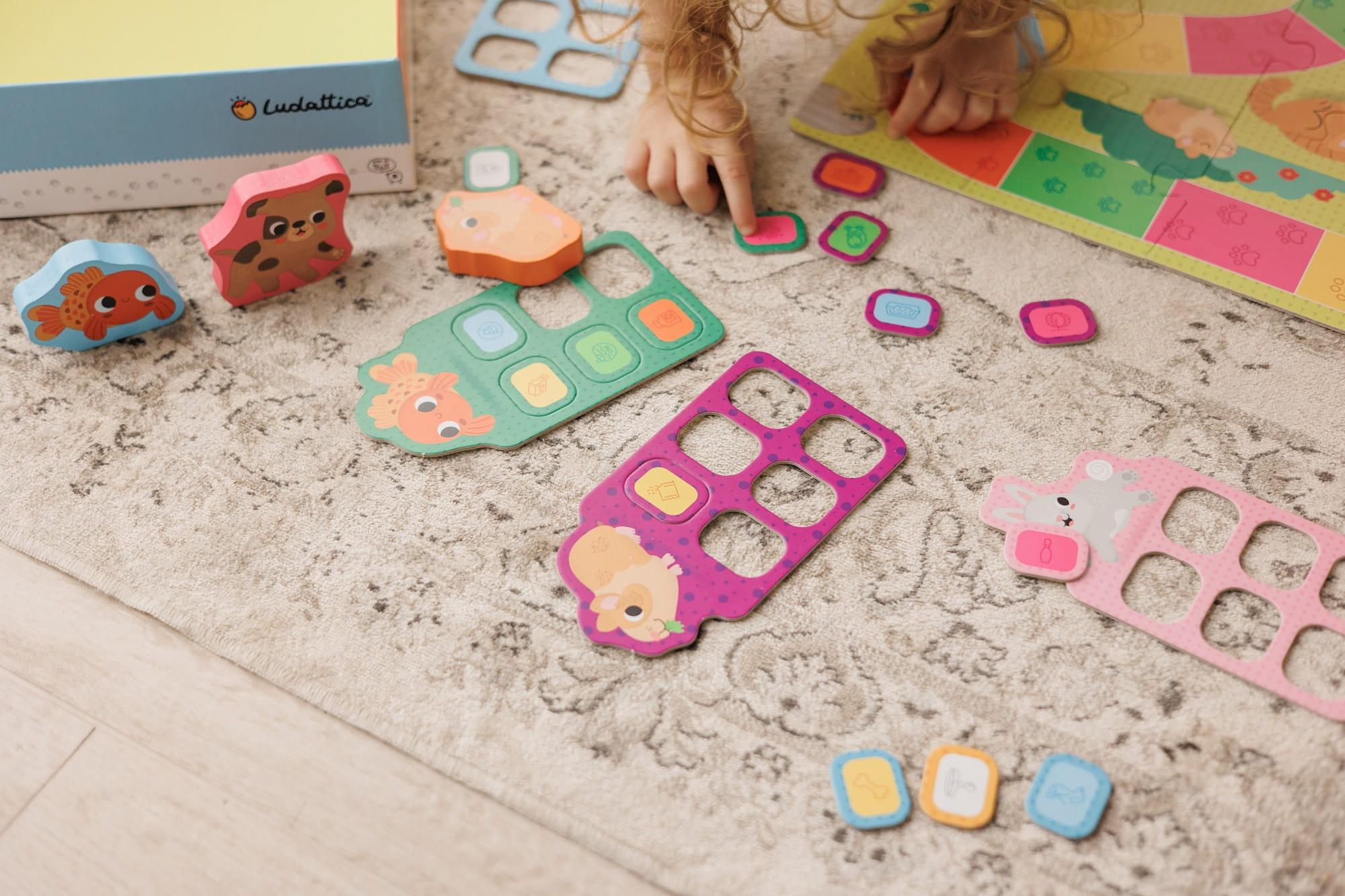Dzięki dołączonym do zestawu drewnianym zwierzątkom można rozpocząć swobodną zabawę w ustawianie, która stymuluje logiczne myślenie i rozwija umiejętności wzrokowo-przestrzenne dziecka.