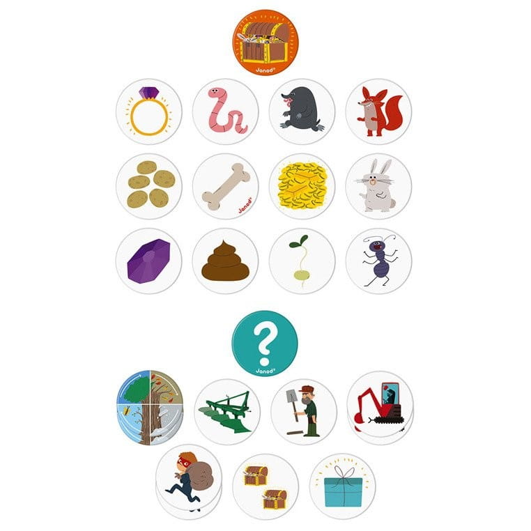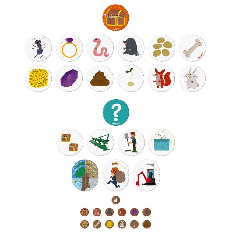 Gra memory Janod Skarby w ogrodzie. Znajdź skarby zakopane w ogródku. Wygrywa ten gracz, który zbierze ich najwięcej.