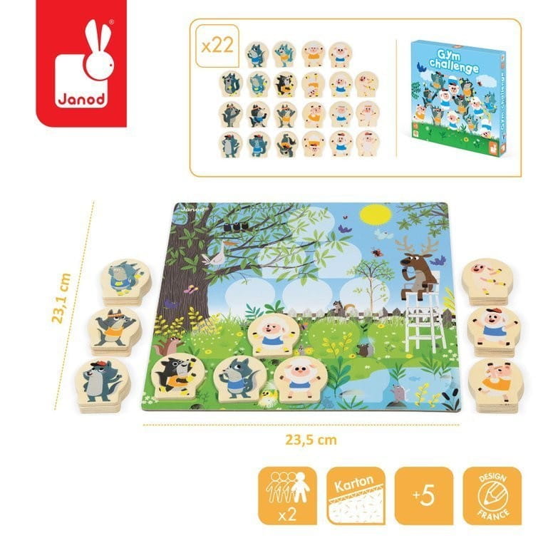 Gra strategiczna Zawody gimnastyczne JANOD ma na celu dotarcie na szczyt, przestrzegając zasad zawodów, czyli stając wyłącznie obok zwierzątka ze swojej drużyny lub w takim samym stroju. Gracz, który zrobi to jako pierwszy – wygrywa. Gra ta uczy koncentracji, spostrzegawczości i refleksu.