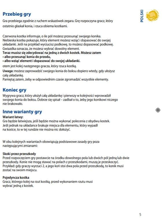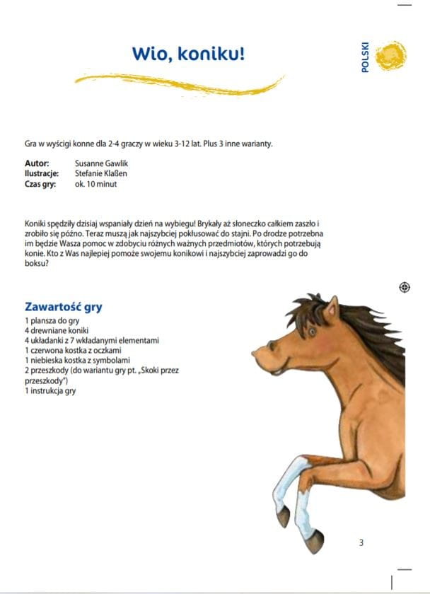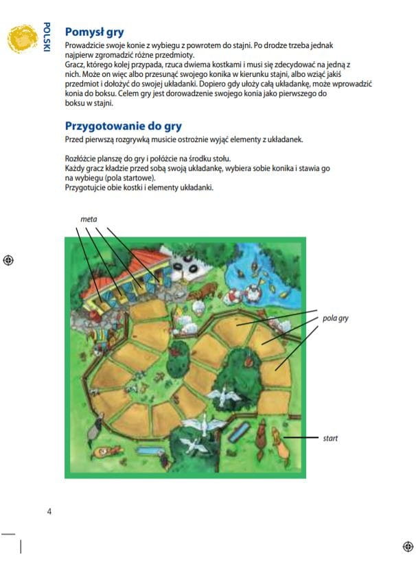Gracz, którego kolej przypada, rzuca dwiema kostkami i musi się zdecydować na jedną z nich. Może on więc albo przesunąć swojego konika w kierunku stajni, albo wziąć jakiś przedmiot i dołożyć do swojej układanki. Dopiero gdy ułoży całą układankę, może wprowadzić konia do boksu. Celem gry jest dorowadzenie swojego konia jako pierwszego do boksu w stajni.