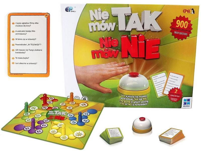 Wylosuj kartę i poproś przeciwnika, by przeczytał Ci po kolei wszystkie pytania. Jeśli na któreś z nich odpowiesz: TAK lub NIE, pozostali gracze muszą uderzyć w dzwonek tak szybko jak to tylko możliwe. Jeśli jednak uda Ci się uniknąć tych słów możesz przesunąć się o jedno pole do przodu. Zwycięzcą zostaje gracz, który jako pierwszy dojdzie na środek planszy. Czas rozgrywki ok. 20 minut.