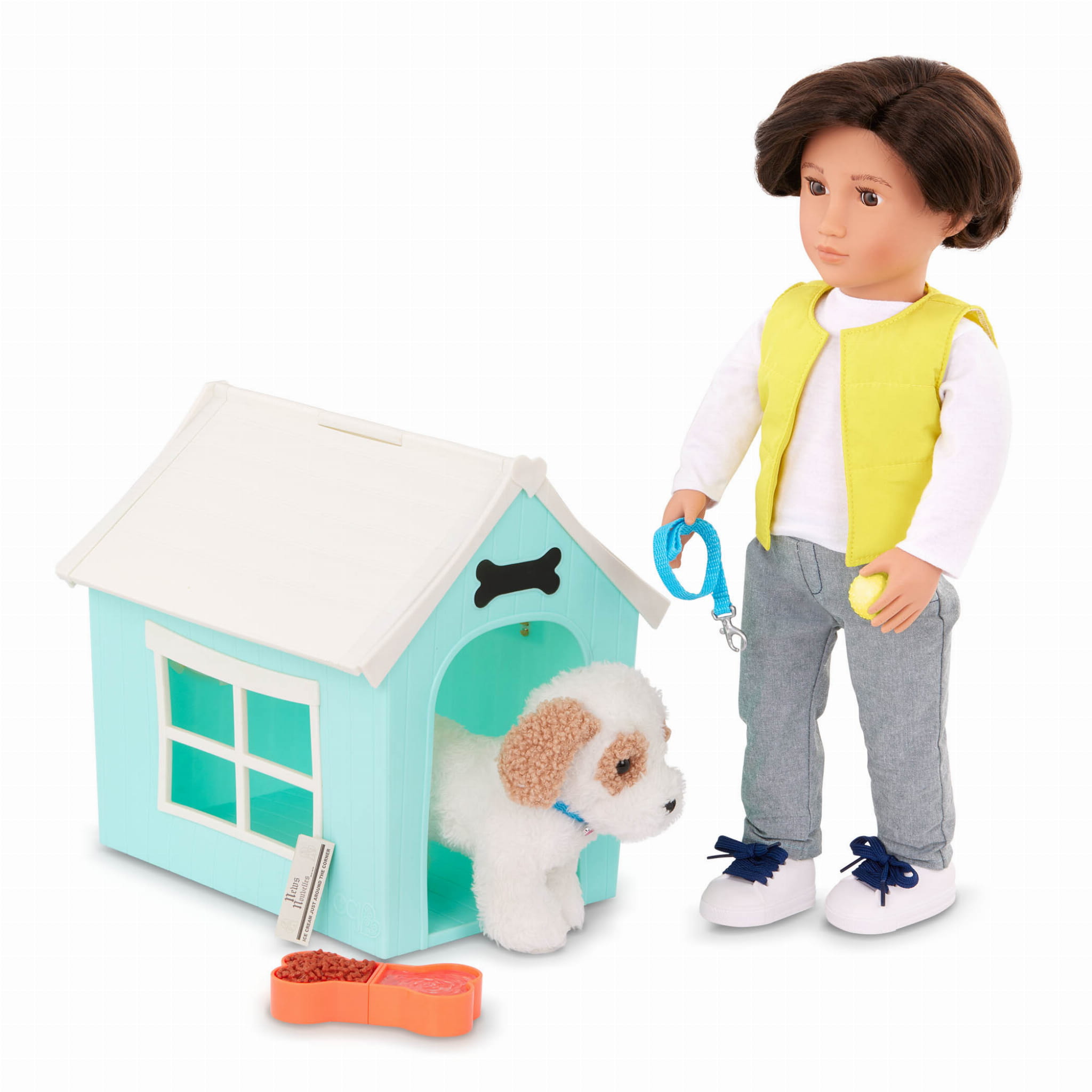Fantastyczny domek dla pupili, z którym dzieci mogą opiekować się swoimi zwierzętami za pomocą załączonych akcesoriów Our Generation Puppy Place, w zestawie jest także 15-centymetrowy szczeniak.