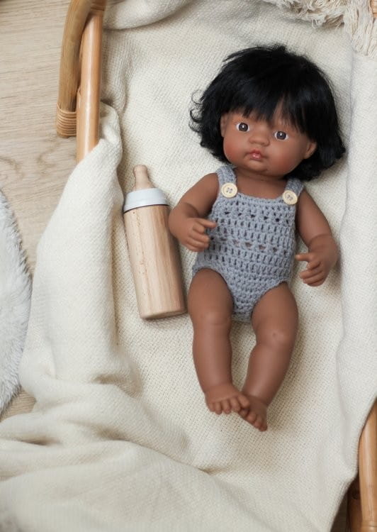 Opiekować sie laleczką, karmić ją , tulić i wszędzie ze sobą zabierać - zabawa, która dzieci uwielbią, a przy tym rozwijają zmysł opiekuńczości i odpowiedzialności. Drewniana butelka dla lalek idealnie komponuje się z ideą lalek Miniland.