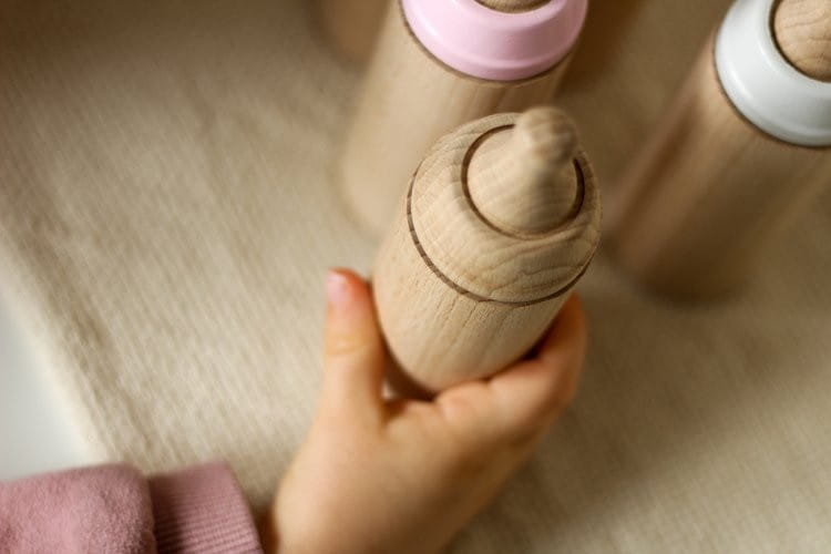 Opiekować sie laleczką, karmić ją , tulić i wszędzie ze sobą zabierać - zabawa, która dzieci uwielbią, a przy tym rozwijają zmysł opiekuńczości i odpowiedzialności. Drewniana butelka dla lalek idealnie komponuje się z ideą lalek Miniland.