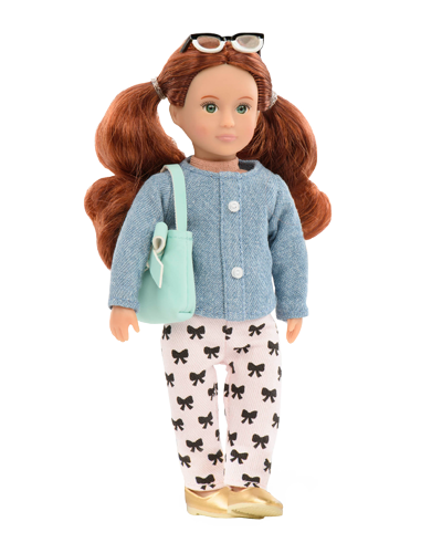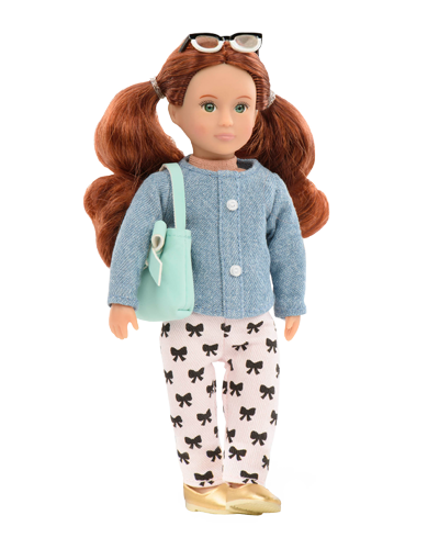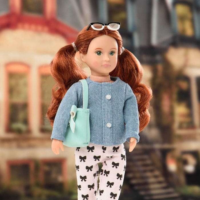 Lalka Lori Autumn ma zielone oczy, długie kasztanowe włosy, jest ubrana w jeansowa koszulę, różowe spodnie w kokardki, beżowe mokasyny , nosi zieloną torebkę i modne okulary. Laleczka Lori o wysokości 15 cm posiada miękki tułów, ruchome ręce i nogi oraz delikatny wyraz twarzy, jej piękne długie włosy mogą być czesane i stylizowane. Rudowłosa lalka dla dziewczynki jest zdecydowana, odważna i inteligentna.