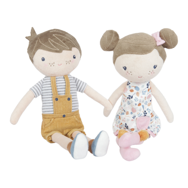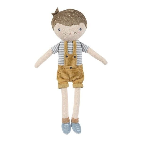 Miękka lalka Little Dutch chłopiec Jim, która przybywa w kartonowym pudełku. Lalka Little Dutch jest sympatyczna, przyjacielska, idealna do przytulania się, pocieszania, rozweselania, opiekowania się i zabierania wszędzie ze sobą. Miękka lalka jest starannie uszyta z miłej tkaniny w delikatnych kolorach. Buzia lalki jest wyszywana, lalka jest ubrana w musztardowe ogrodniczki, ma buty i skarpetki. Ta laleczka to piękny prezent dla chłopca i dziewczynki oraz dekoracja pokoiku.