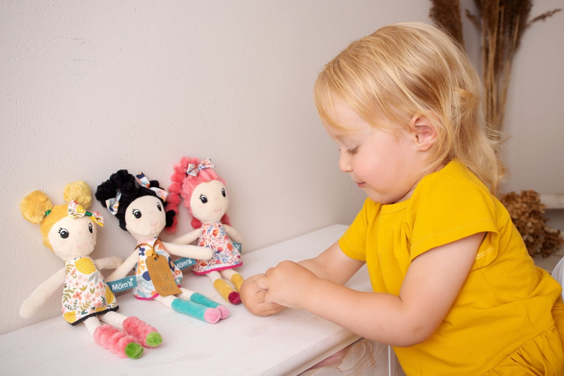 - Do uszycia laleczki użyto bezpiecznych, przyjemnych w dotyku materiałów o różnej strukturze.