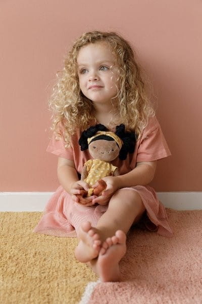 Miękka laleczka Little Dutch to urocza Evi, która mieszka w kolorowym pudełku. Lalka Little Dutch jest urocza, przyjacielska, idealna do przytulania się, pocieszania, rozweselania, opiekowania się i zabierania wszędzie ze sobą. Miękka lalka jest starannie uszyta z miłej tkaniny w delikatnych kolorach, ma dwie kiteczki, miękkie skarpetki z pomponami, sukienkę w kwiatki. Buzia lalki jest wyszywana, bardzo bezpieczna dla dzieci ze względu na brak elementów, które można oderwać, odgryźć. Ta laleczka to piękny prezent dla dziewczynki oraz dekoracja pokoiku.