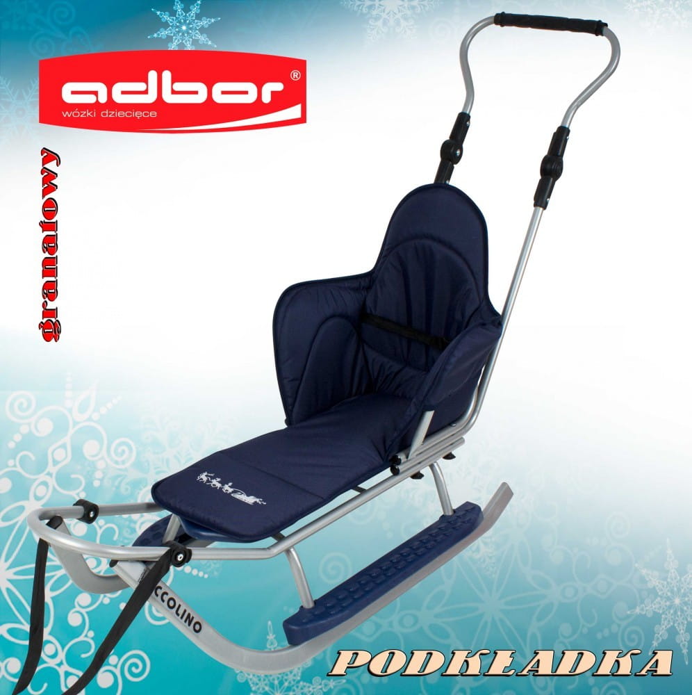 Podkładka, granatowy materacyk nakładany się na oparcie sanek. Miękki i przytulny materacyk zapewni dziecku komfort podczas zimowych spacerów. Dziecko siedzi komfortowo na sankach, ma wygodne oparcie i ciepło w pupę.
