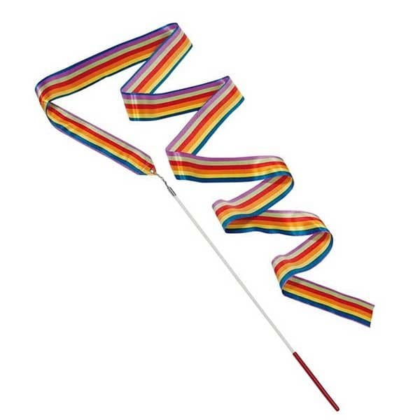 Tęczowa wstążka gimnastyczna Goki o długości 2 metry do ćwiczeń i zabaw. Wstążka pięknie wiruje, zmieniając kolory. Zachęca dzieci do aktywności fizycznej. Idealnie sprawdzi się na zajęciach z tańca, rytmiki, gimnastyki artystycznej, czy zabaw w domu. Falująca wstążka będzie też świetnym rekwizytem do swobodnych zabaw, podskoków, piruetów i wygłupów.