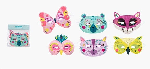 - Zestaw zawiera 6 masek: mmtylek, kotka, lisica, 2 sowy, misia,