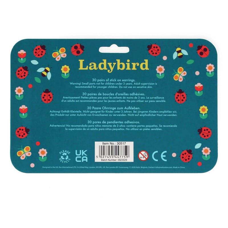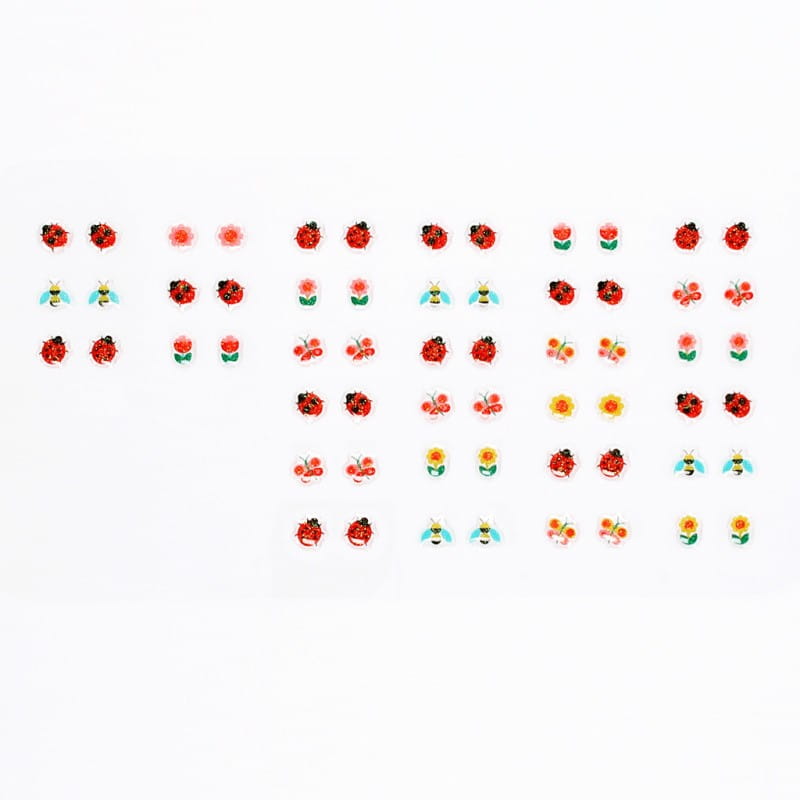 Brokatowe kolczyki naklejane na uszy, urocza i przyciągające wzrok biżuteria dla najmłodszych. Rex Ladybird to samoprzylepne, kolorowe kolczyki z brokatem i wzorami w biedronki, motylki, czy kwiatki. 30 różnych par samoprzylepnych kolczyków dla małych księżniczek.