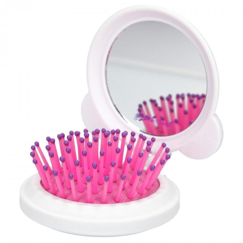 Kieszonkowa szczotka do włosów w wesołej grafice. Mała szczotka ucieszy dziewczynkę, która może zabrać ją wszędzie ze sobą. Otwierana szczotka ma wewnątrz lusterko. Kompaktowa szczotka mieści się w plecaku, kosmetyczce i torebce. Szczotka do czesania jest przyozdobiona cekinami.