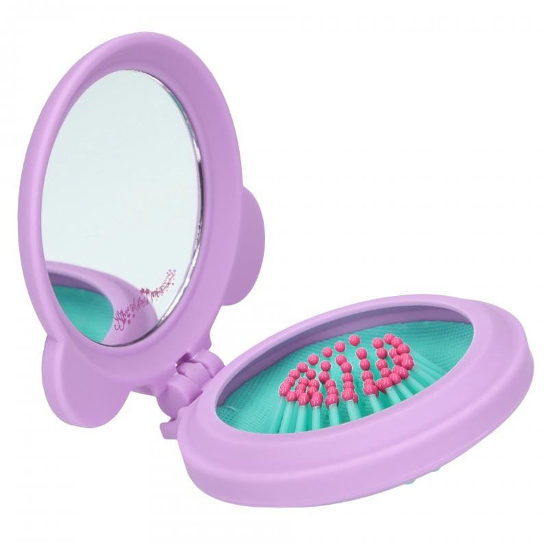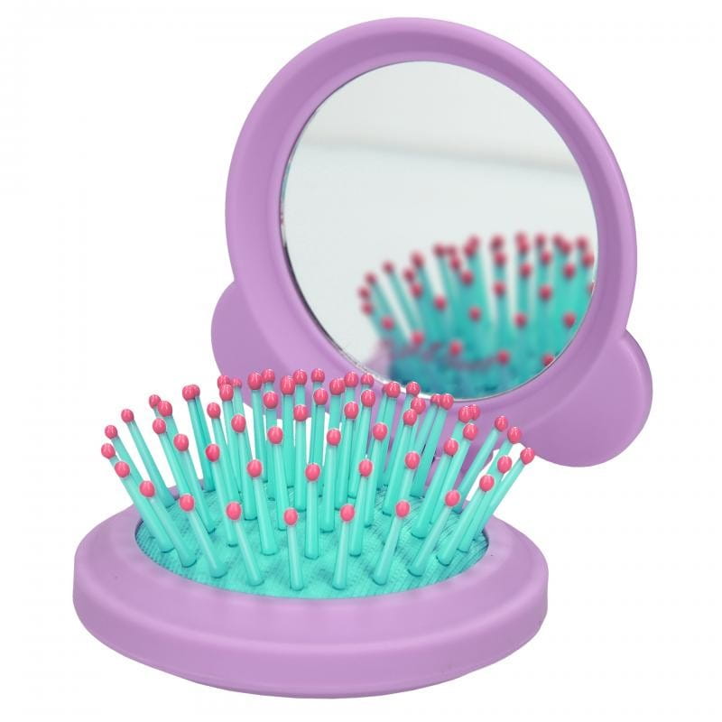 Kieszonkowa szczotka do włosów w wesołej grafice. Mała szczotka ucieszy dziewczynkę, która może zabrać ją wszędzie ze sobą. Otwierana szczotka ma wewnątrz lusterko. Kompaktowa szczotka mieści się w plecaku, kosmetyczce i torebce. Szczotka do czesania jest przyozdobiona cekinami.
