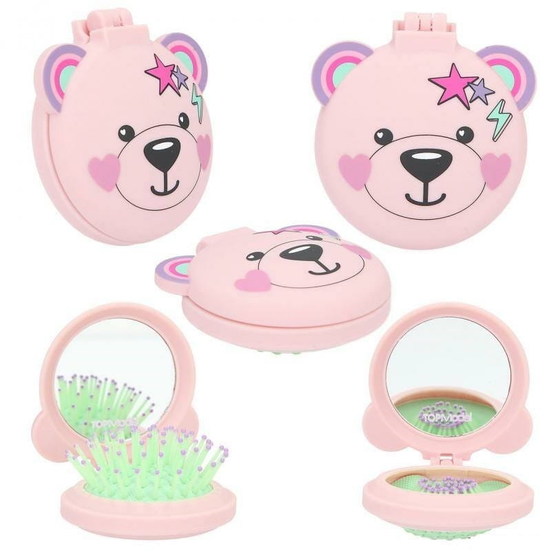 Składana Szczotka do Czesania Włosów z Lusterkiem Miś róż - TOPModel