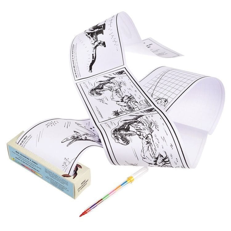 Wspaniała zabawa podczas malowania niekończącej się rolki z kolorowanką Rex London Dinozaury oraz modułową kredką. Zestaw idealnie nadaję się do zabrania ze sobą. Zajmuje mało miejsca w torebce i dziecięcym plecaku, a może przysporzyć tyle szczęści i zająć wolną chwilę np w poczekalni, restauracji, samolocie. Mały kartonik zawiera rolkę o długości 2 metry z dinozaurami oraz kredkę ze zmieniającym się rysikiem w 7 kolorach.