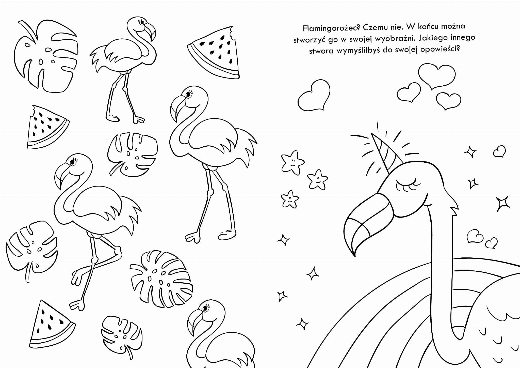Kolorowanka z brokatowymi Naklejkami Flamingi to świetny pomysł na spędzenie czasu w domu, zabranie książeczki ze sobą w podróż, wypełnienie wolnego czasu w poczekalni. Kolorowanka dla najmłodszych posiada duże, pełne różnych detali obrazki ptaków. Dzieci nie tylko kolorują kredkami lub malują farbami, rodzice mogą przeczytać krótkie opisy i polecenia. W kolorowance znajduje się aż 74 brokatowe naklejki , które dzieci mogą przyklejać w dowolne miejsca.