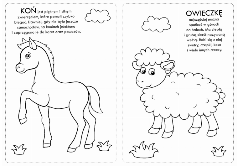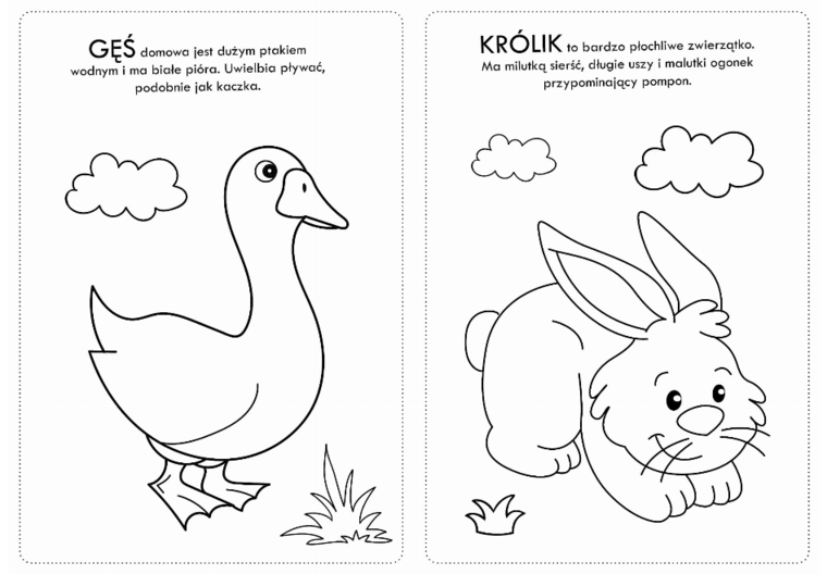 Kolorowanka z Naklejkami Zwierzaczki wiejskie to świetny pomysł na spędzenie czasu w domu, zabranie książeczki ze sobą w podróż, wypełnienie wolnego czasu w poczekalni. Kolorowanka dla najmłodszych posiada duże, czytelne obrazki zwierząt żyjących w gospodarstwie. Dzieci nie tylko kolorują kredkami lub malują farbami, poznają także zwierzęta ze wsi jak kaczki, świnki, owieczki, koguta, kozę, indyka, strusia, krowę i wiele innych. Rodzice mogą przeczytać krótki opis zawierający najważniejsze fakty o zwierzętach z farmy. W kolorowance znajduje się aż 74 naklejki ze zwierzętami, które dzieci mogą przyklejać w dowolne miejsca.