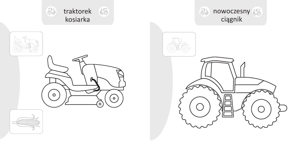 Malowanie-doklejanie. Pojazdy na wsi. Kolorowanka z Naklejkami