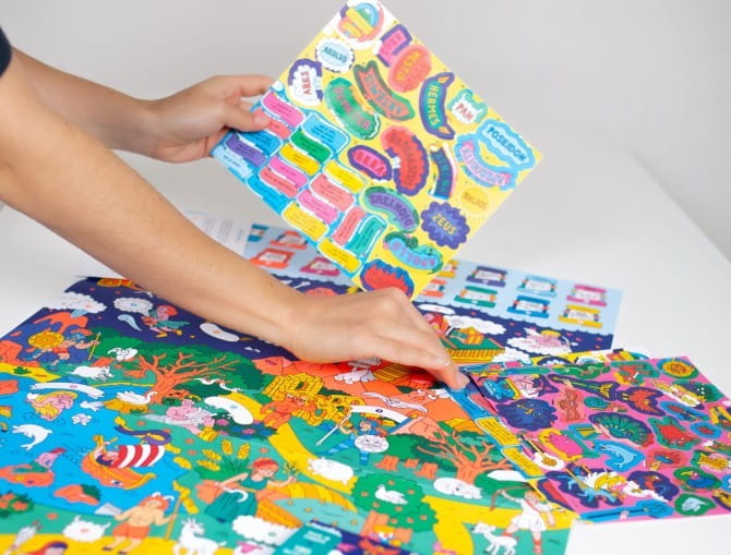 Mitologia od zawsze fascynowała i była źródłem inspiracji. Dziś jej postacie odnajdziemy w filmach, komiksach czy grach. Wraz z tym plakatem odkryj moce i atrybuty bogiń i bogów. Wyklejaj i koloruj do woli, ucząc się przez zabawę.
