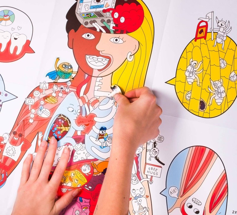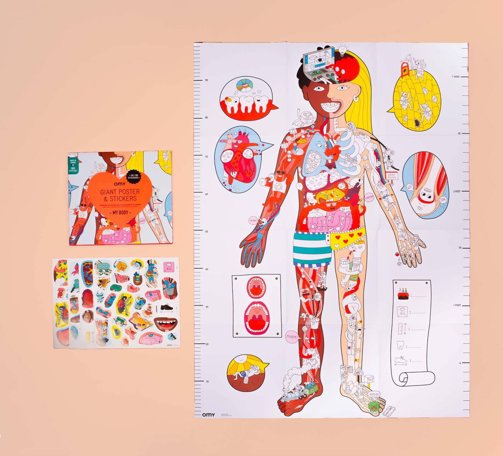 Duży kolorowy plakat Moje Ciało i ponad 100 naklejkami to zestaw kreatywny omy do samodzielnej dekoracji.