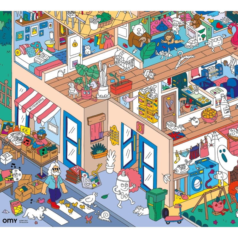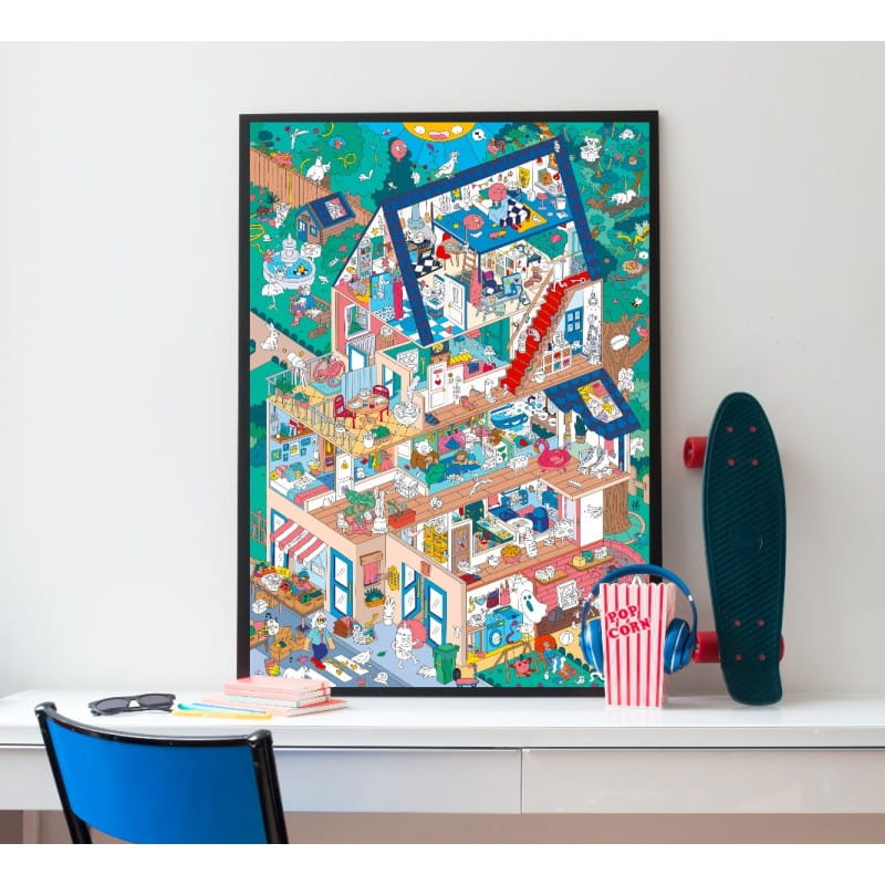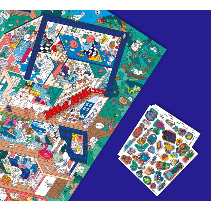 Domowe pielesze w kolorowym wydaniu. Poznaj wszystkie zakamarki w domu - od piwnicy, aż po strych. Odkryj przeróżne wnętrza mieszkań i odwiedź dom sąsiada. Mnóstwo przeróżnych historii, designerskich mebli i zabawnych przygód. Wyklejaj brakujące elementy! To plakat, który posłuży Ci na lata!