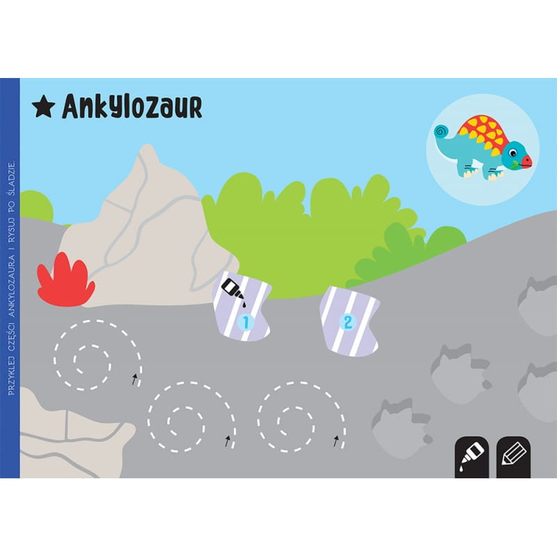 Aktywizująca książka dla przedszkolaków. Jak z niej korzystać? Dziecko wycina proste elementy i przykleja w odpowiedniej kolejności tak, by powstał obrazek, a całość kompozycji dopełnia, rysując po linii przerywanej. Perforacja w książce ułatwia wyrywanie kart i wycinanie. „Wycinam, naklejam, rysuję. Dinozaury. Wycinanki edukacyjne” to okazja do nabywania niezbędnych i praktycznych umiejętności manualnych.. Wycinanki edukacyjne