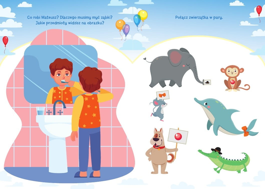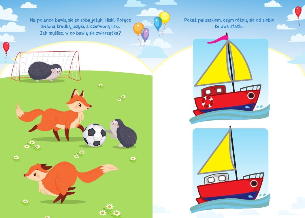 Wesołe zadania zainteresują 3-latki i starsze dzieci. Połącz zwierzątka w pary, ułóż historię o skrzaciku i znajdź przysmak myszki. Baw się i rozwijaj!